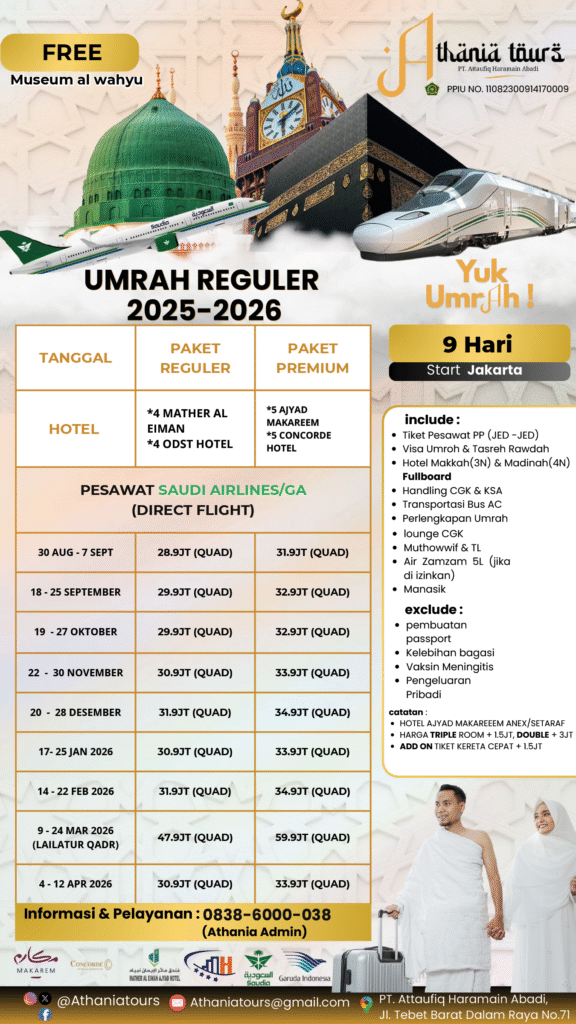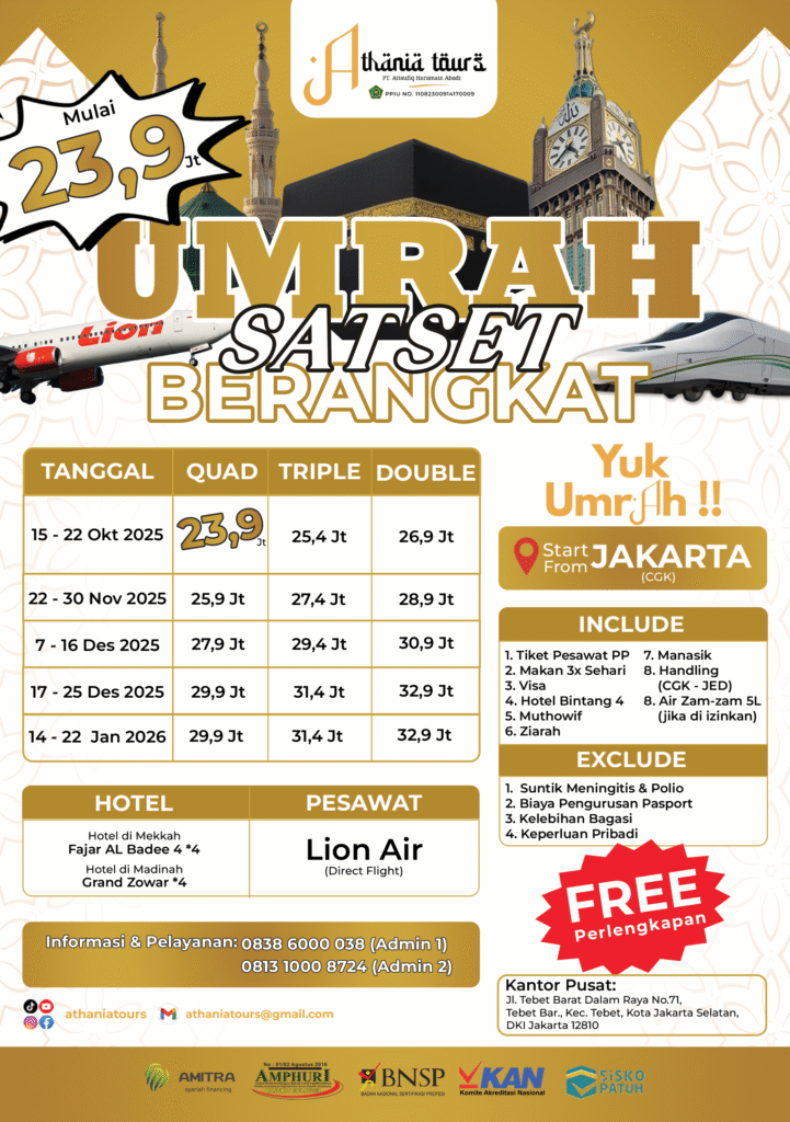 Nikmati berkunjung ke Baitullah dan City Tour dengan pembimbing yang berpengalaman, fasilitas terbaik, dan bonus lainnya. Harga pasti dan keberangkatan sesuai jadwal.